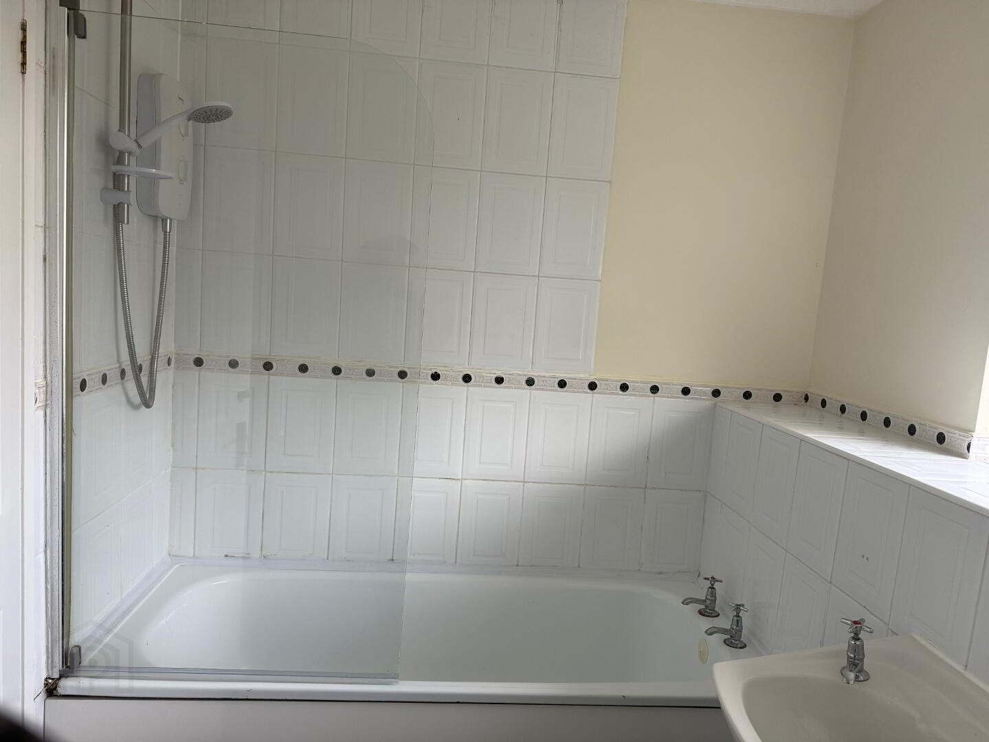 Bathroom: 7’8 x 5’6 Suite includes low flush wc, wash hand basin, bath with electric shower and glazed shower screen, walls part tiled and floor tiled.