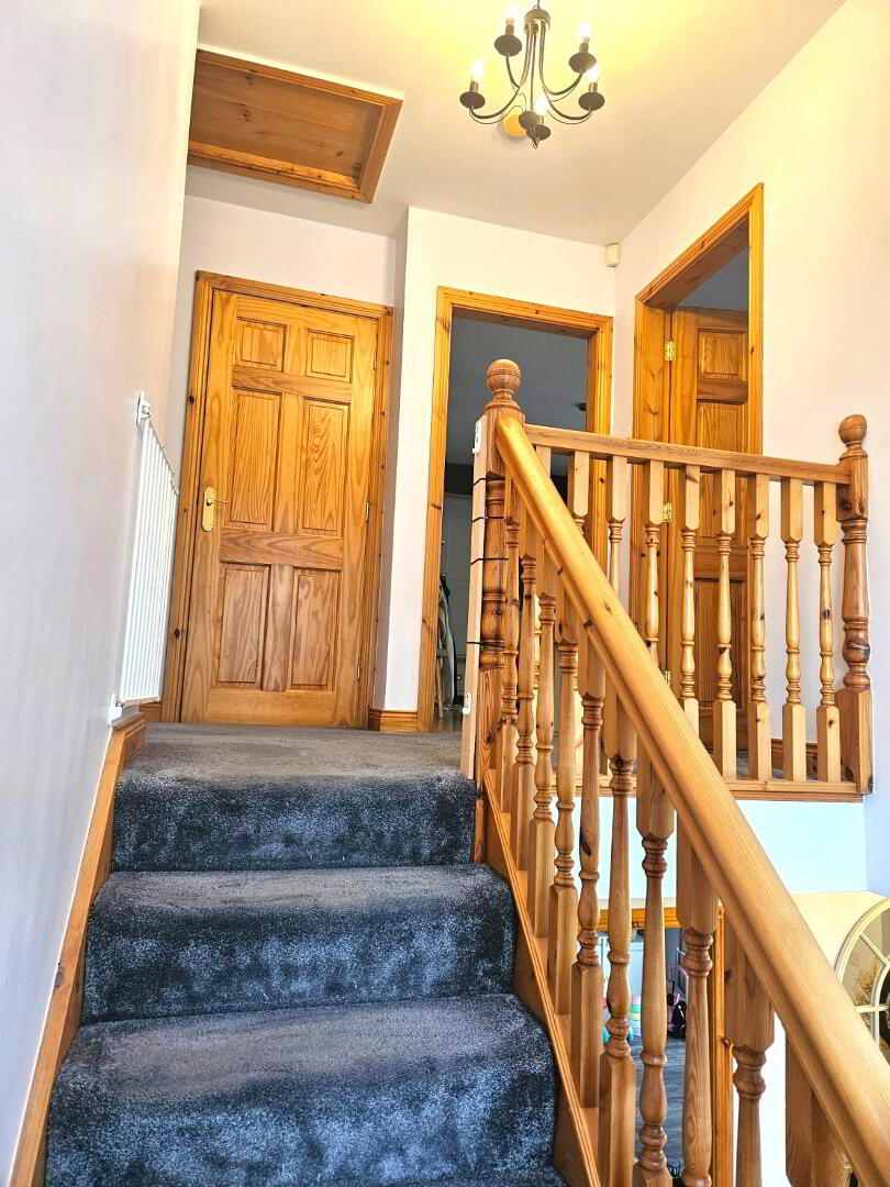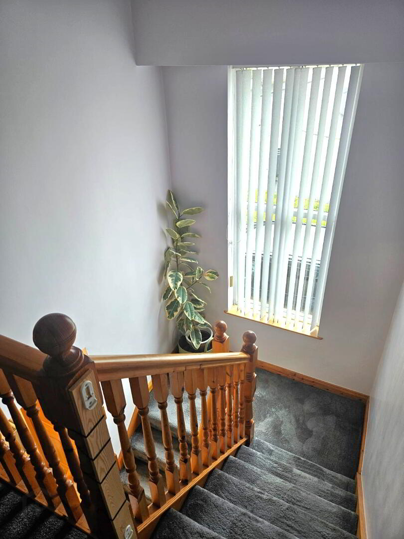 Carpet to stairs and landing. Shelved hot press. Vertical blinds to landing. Feature window.