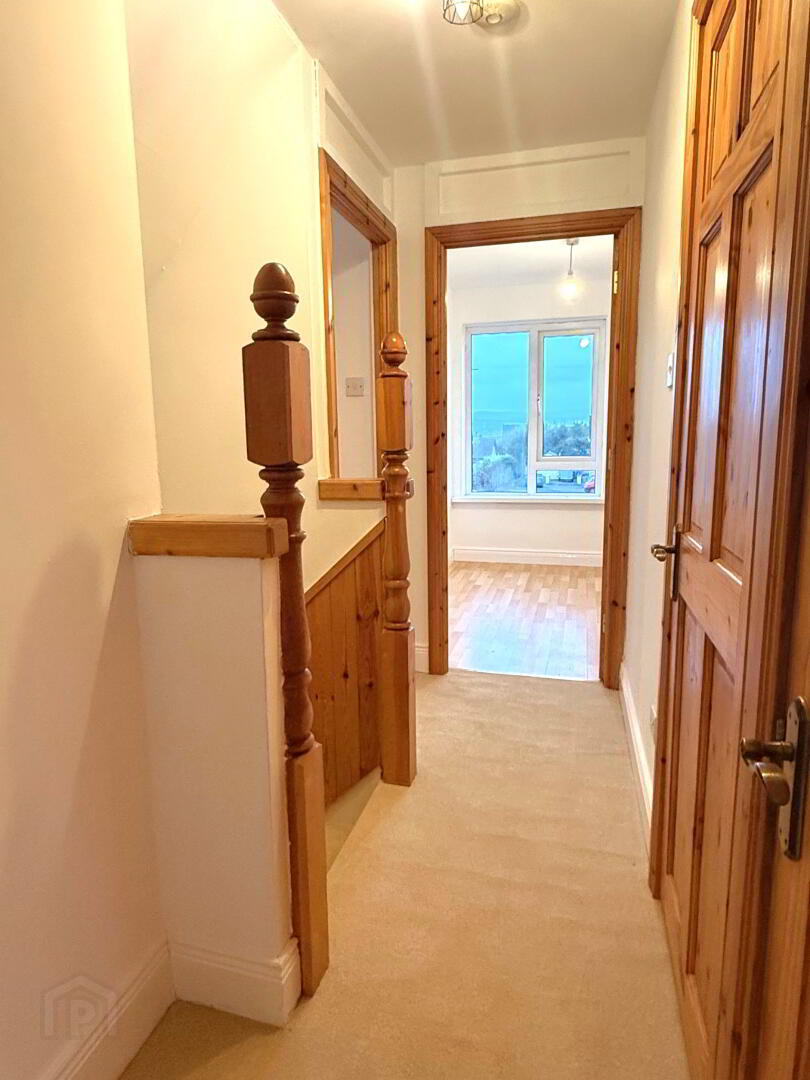 First Floor: Carpet to stairs and landing, shelved hotpress and cloaks.