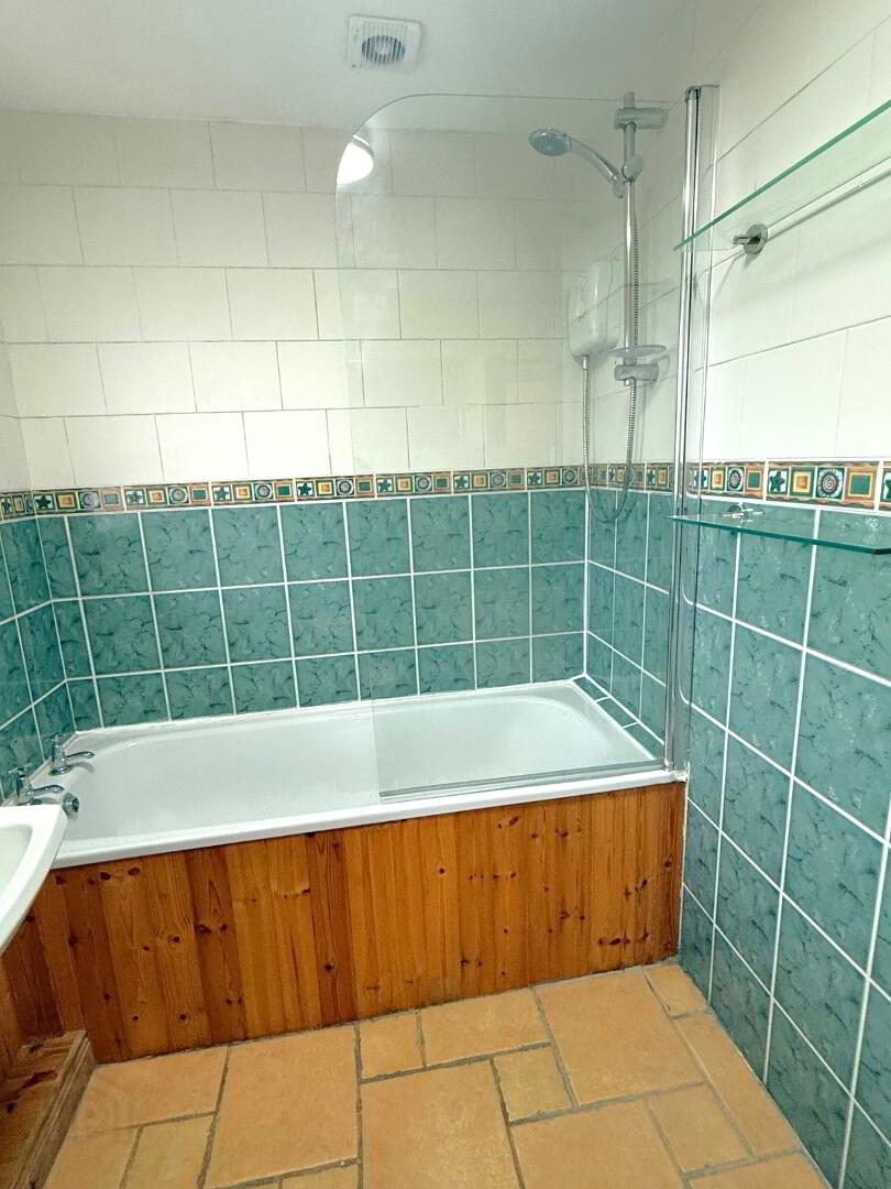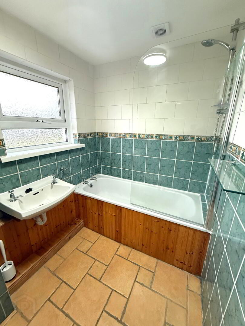Bathroom: 8’2’’ x 5’7’’ Suite includes low flush w.c., wash hand basin, bath with electric shower over, glazed shower screen, walls fully tiled and floor tiled.