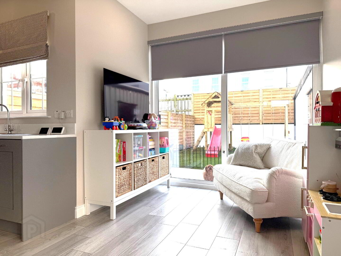 integrated electric fire, tiled floor, coving to ceiling. TV points, roller blinds.