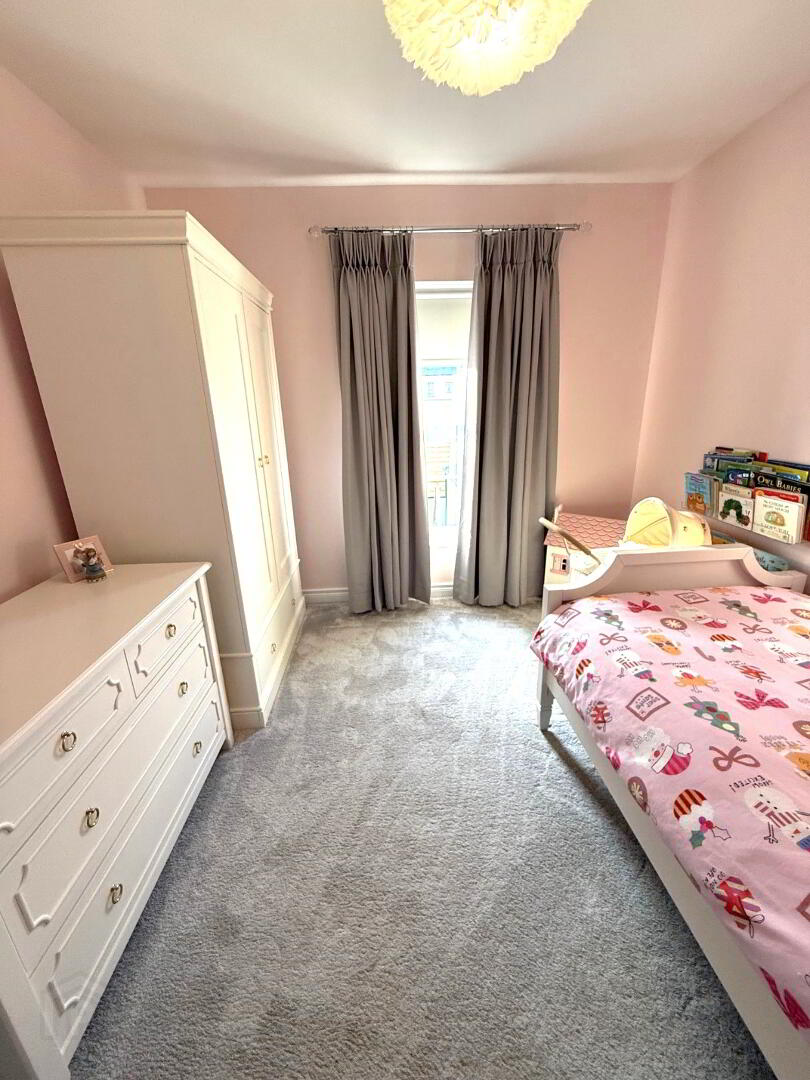 Bedroom 3: 10' 9'' x 9' 3'' Range of fitted bedroom furniture, laminate wooden floor, roman blinds.