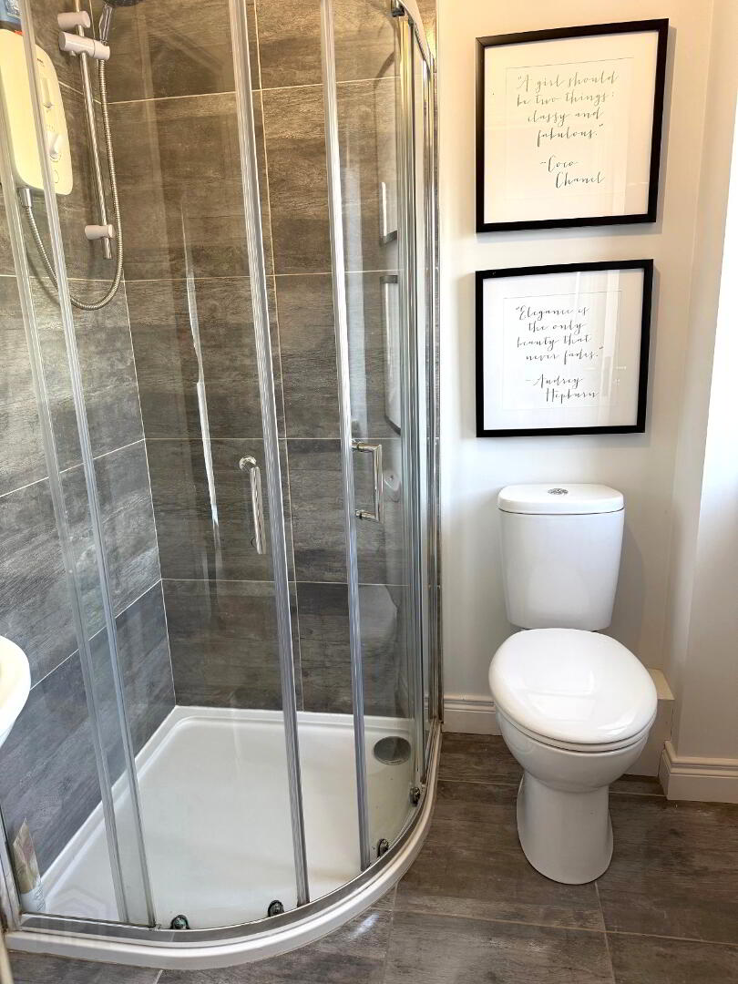 En Suite: 5' 7'' x 5' 8'' Low flush wc, wash hand basin with splash back and mixer taps, electric shower,