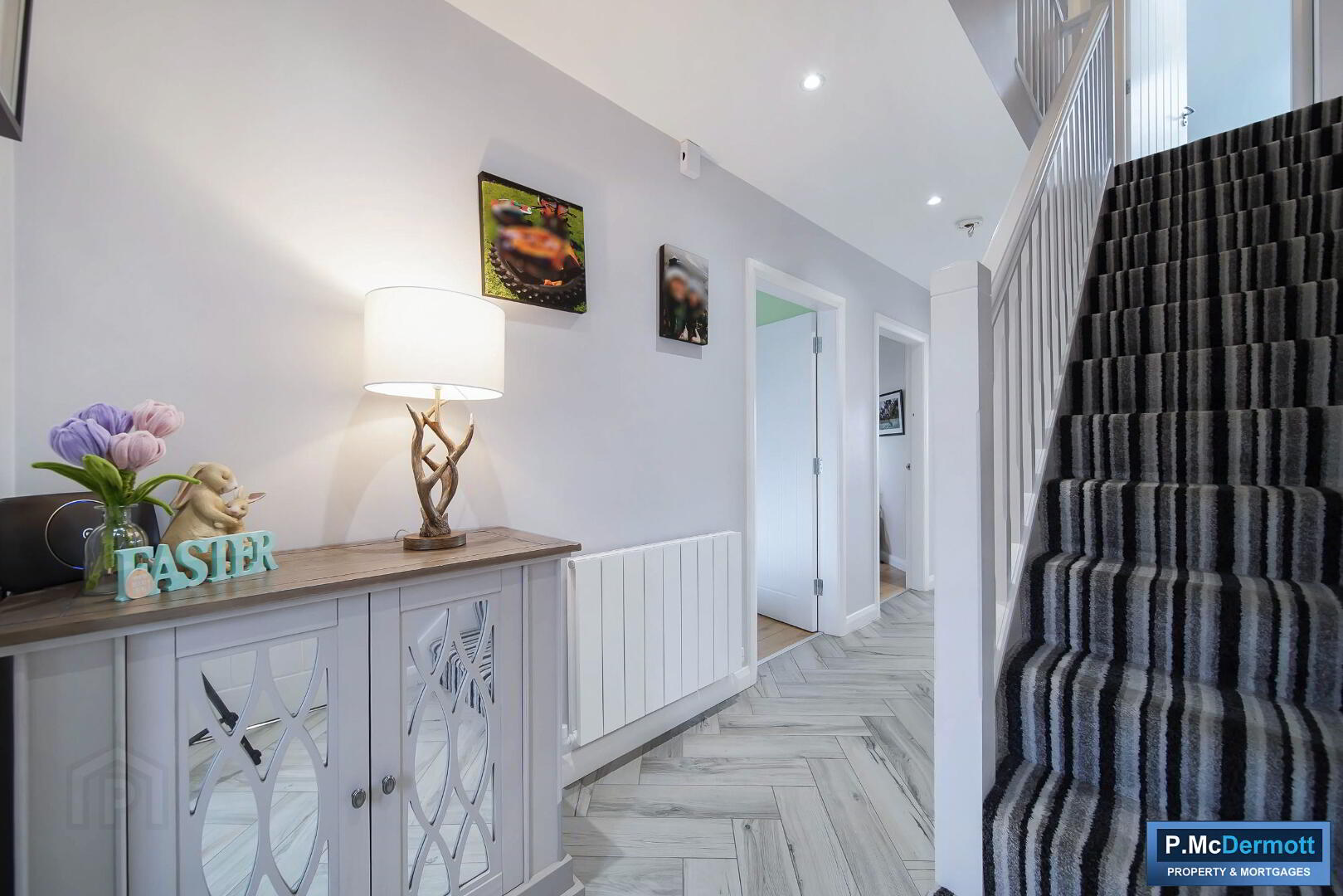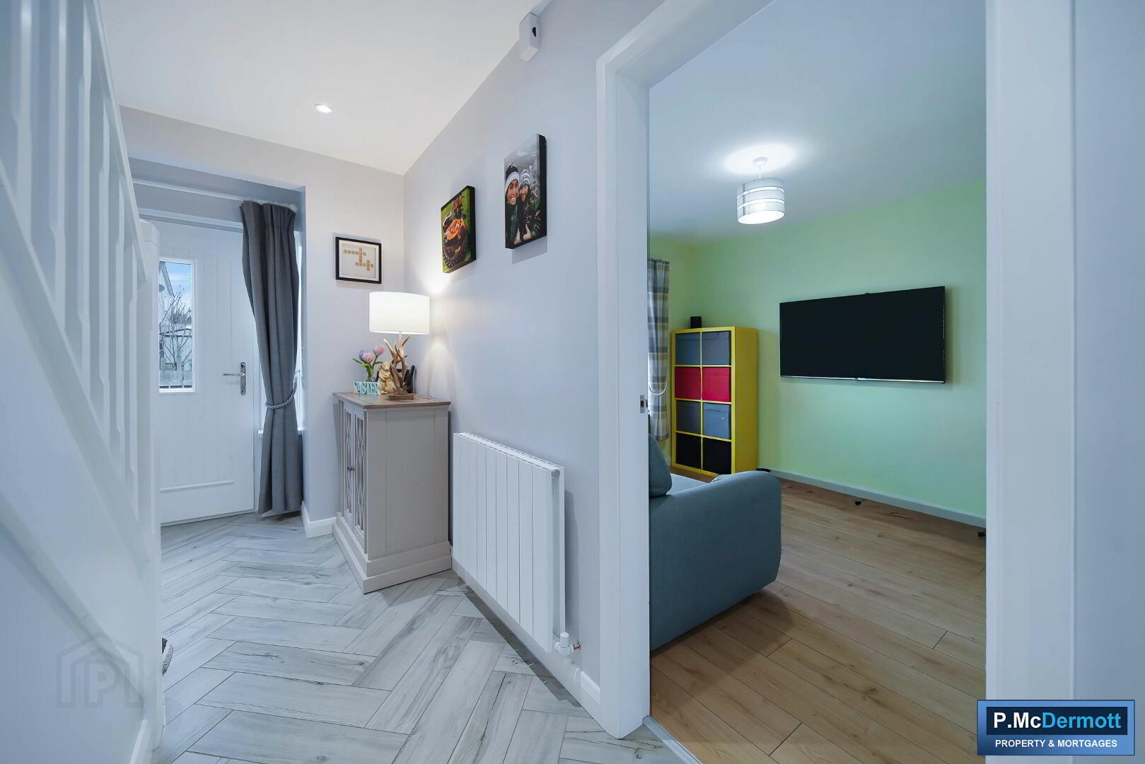 A bright and welcoming reception area featuring a uPVC front door with glazed sidelight, recessed downlighting and stylish tiled flooring.