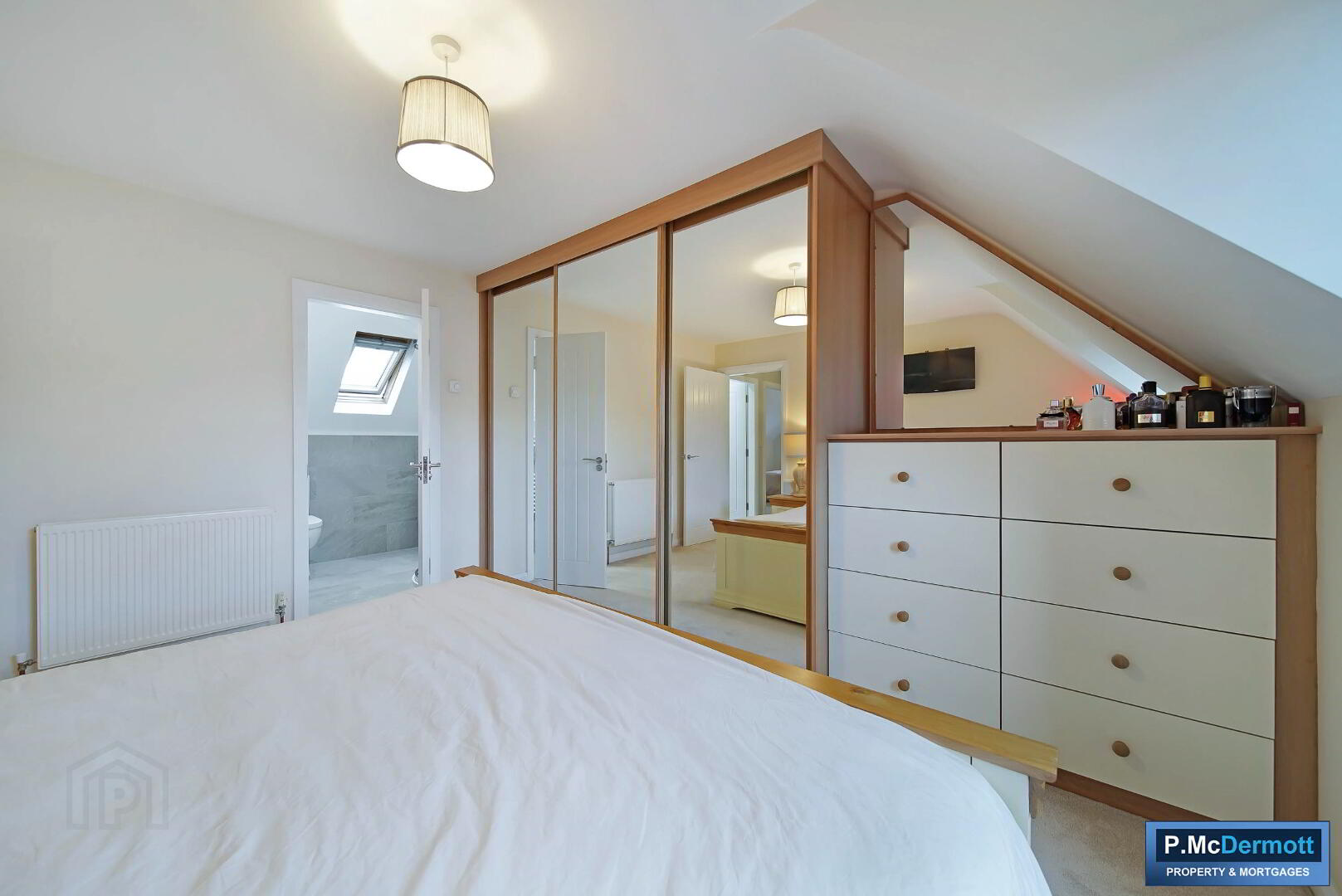 A spacious principal bedroom featuring an excellent range of mirrored slide robes and fitted furniture, carpet flooring, blinds and TV points.