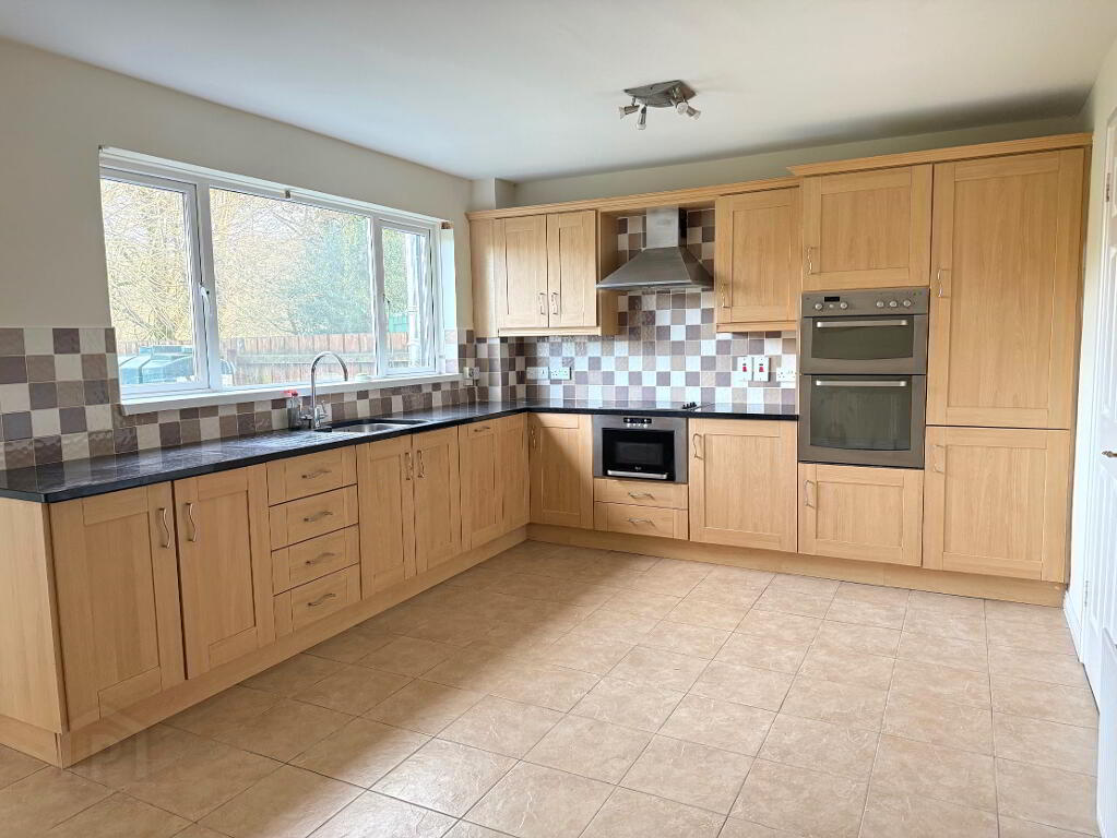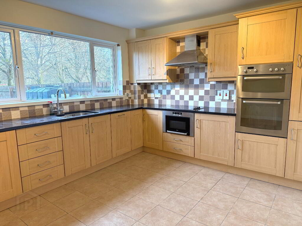Kitchen/Dining Area: 17’8 x 11’4 Excellent range of eye and low level fitted kitchen units incorporating 1 ½ bowl stainless steel sink with mixer taps, ‘Whirlpool’ hob and oven, ‘Whirlpool’ eye level oven, ‘Gorenje’ integrated fridge freezer, walls tiled between kitchen units, floor tiled, storage and cloaks under stairs, granite work tops.