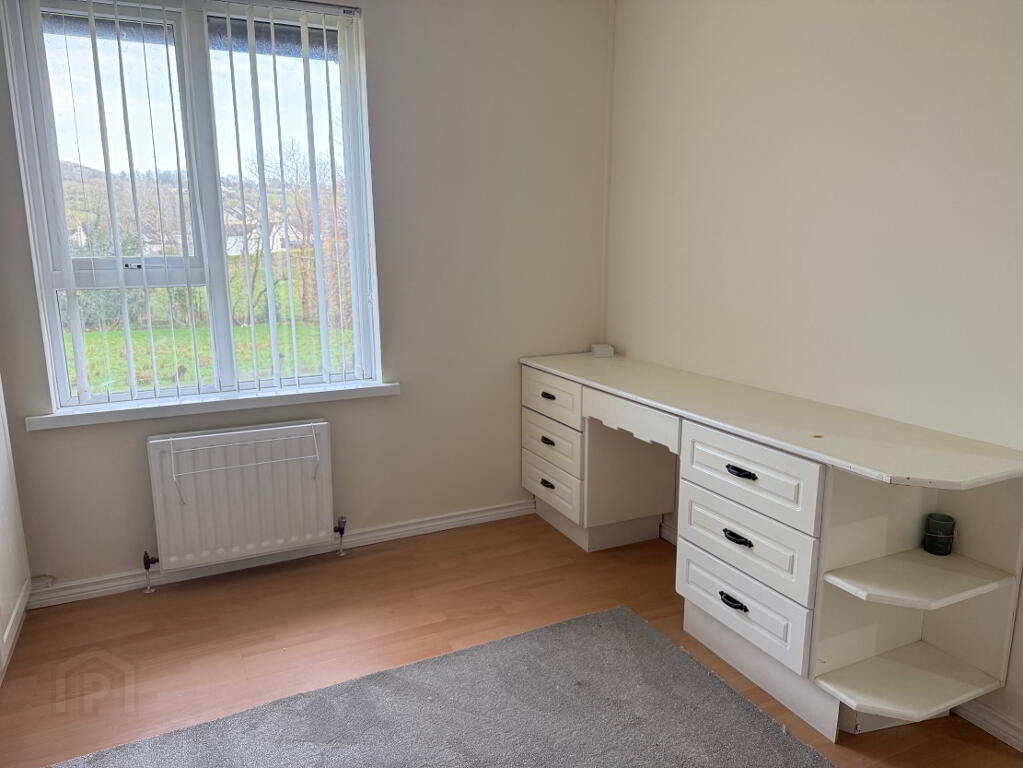 Bedroom 2: 11’6 x 10’4 Built-in wardrobe, laminate floor and vertical blinds.