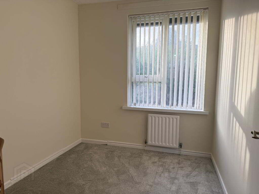 Bedroom 3: 8’7 x 7’3 Carpets, vertical blinds.