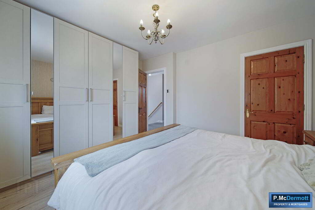 Range of fitted wardrobe furniture. Laminate wooden floor. Built-in wardrobe space.